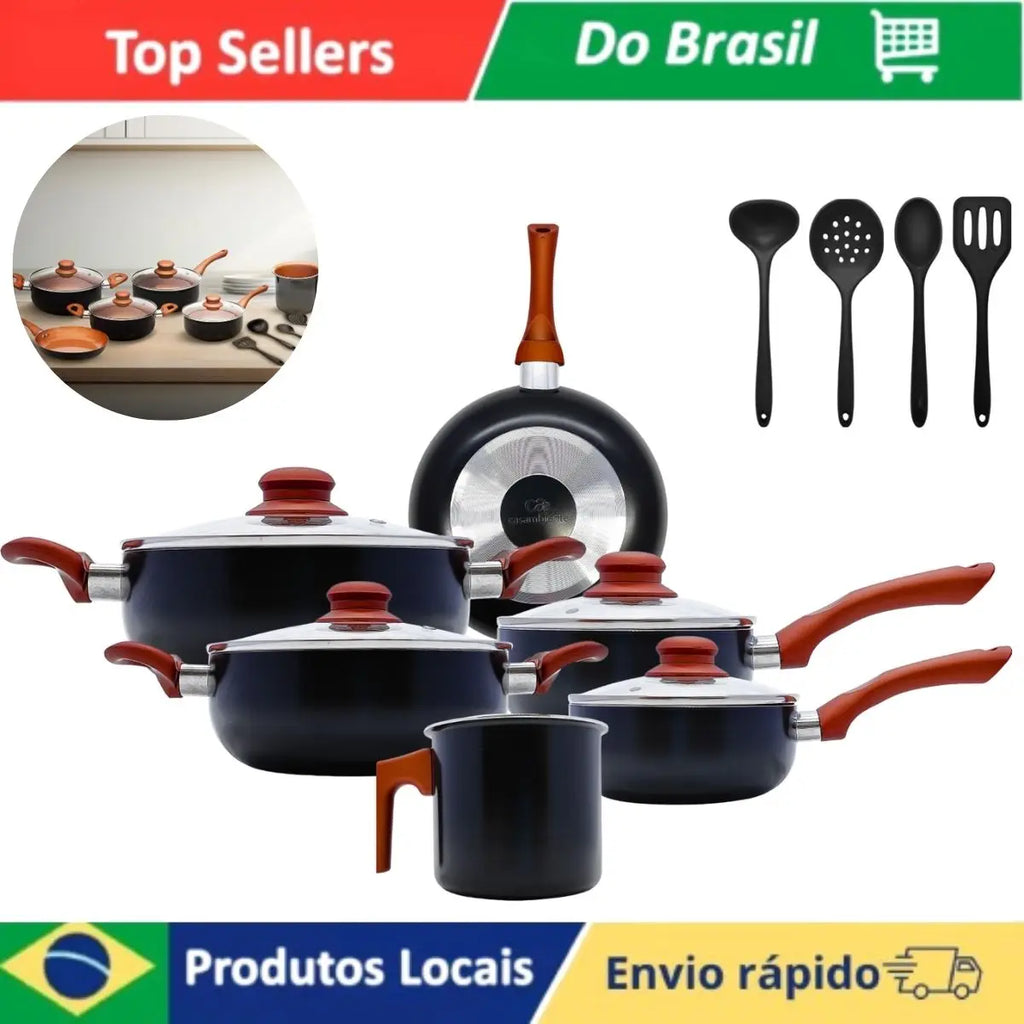Conjunto de Panelas Antiaderentes Cerâmicas 10 Peças, Cabos Resistentes ao Calor, Para Uso Doméstico Vegas