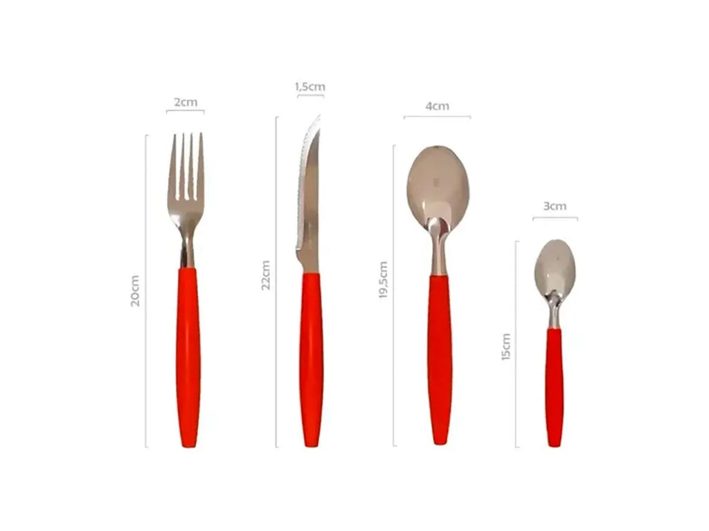Jogo de Talheres 24 Peças Inox com Organizador de Gaveta Vermelho