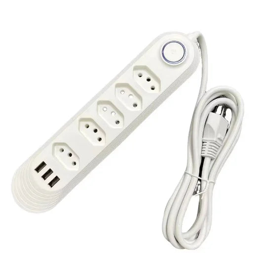 Extensão Elétrica 2m com 3/4 Tomadas e 3 Entradas USB com Botão