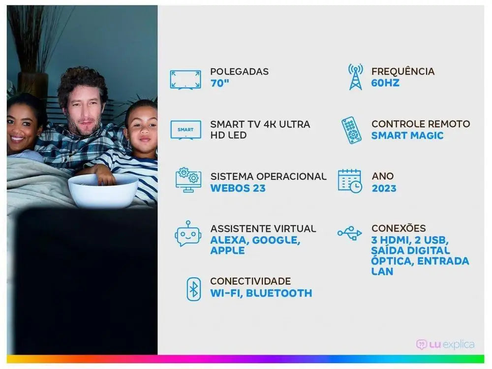 Smart TV 70 ”4K UHD LED LG 70UR8750 Wi-Fi Bluetooth Alexa 3 HDMI IA