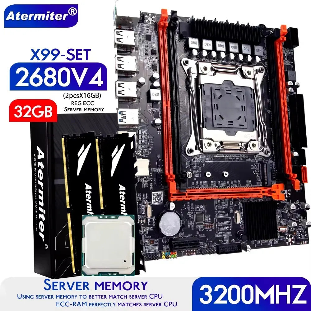 Kit Placa-mãe Atermiter X99 D4 com Xeon E5 2680 V4 LGA2011-3 + Memória 32GB (2x16GB) DDR4 3200MHz REG ECC