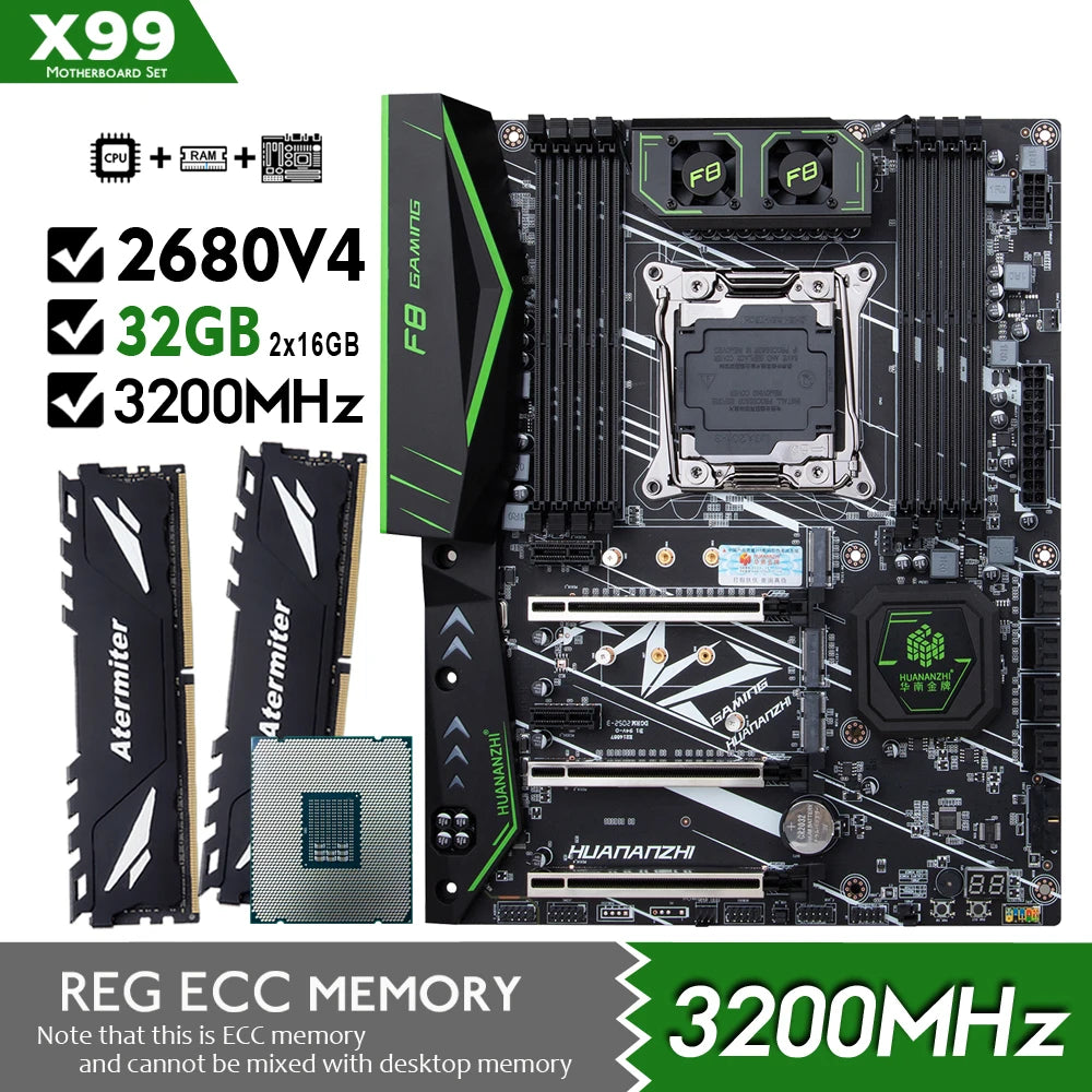 Kit Placa-mãe HUANANZHI X99 F8 com Xeon E5 2680 V4 + Memória 32GB (2x16GB) DDR4 3200MHz REG ECC + suporte WiFi