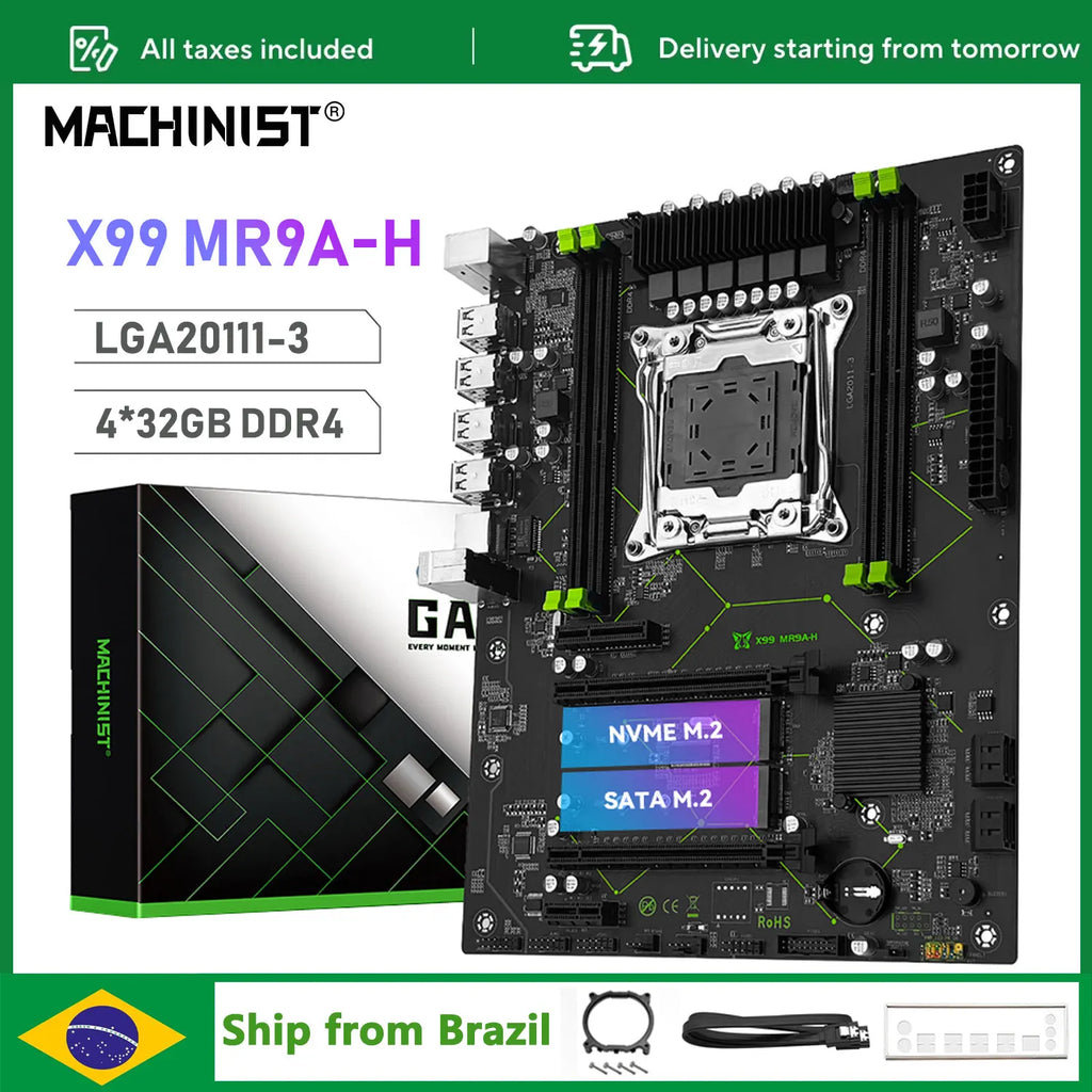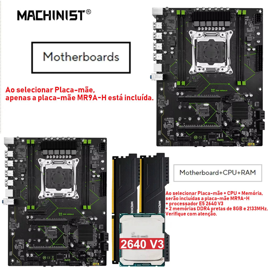 Kit Placa-mãe MACHINIST X99 MR9A-H com Intel Xeon E5 2640 V3 LGA2011-3 + Memória 16GB (2x8GB) DDR4 2133MHz + suporte NVMe M.2 (opcional)