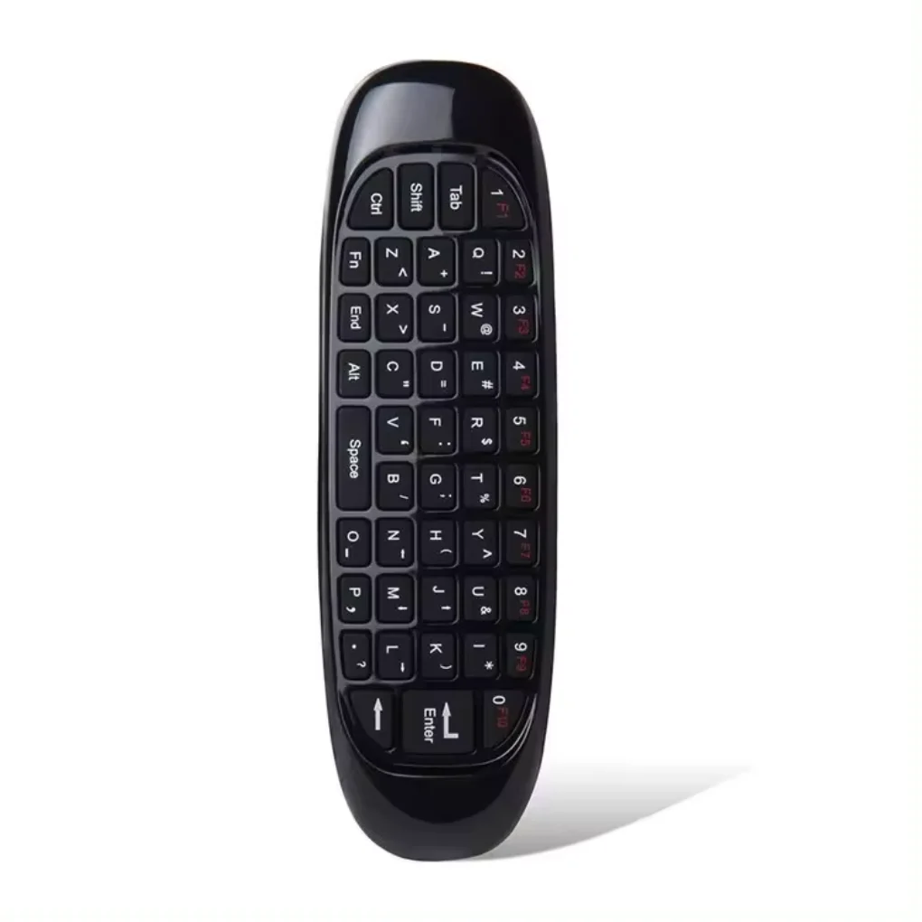 Teclado Qwerty 2.4GHz Wireless com Air Mouse recarregável, compatível com diversos dispositivos.