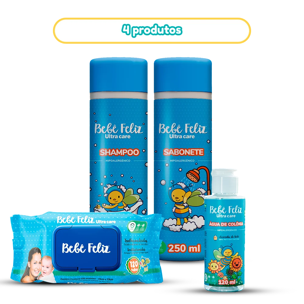 O Happy Bath Kit é perfeito para o cuidado diário do bebê, oferecendo limpeza, hidratação e frescor em um só conjunto. O kit inclui: 1 shampoo suave, 1 sabonete delicado, 1 toalha macia e 1 colônia Happy Baby.