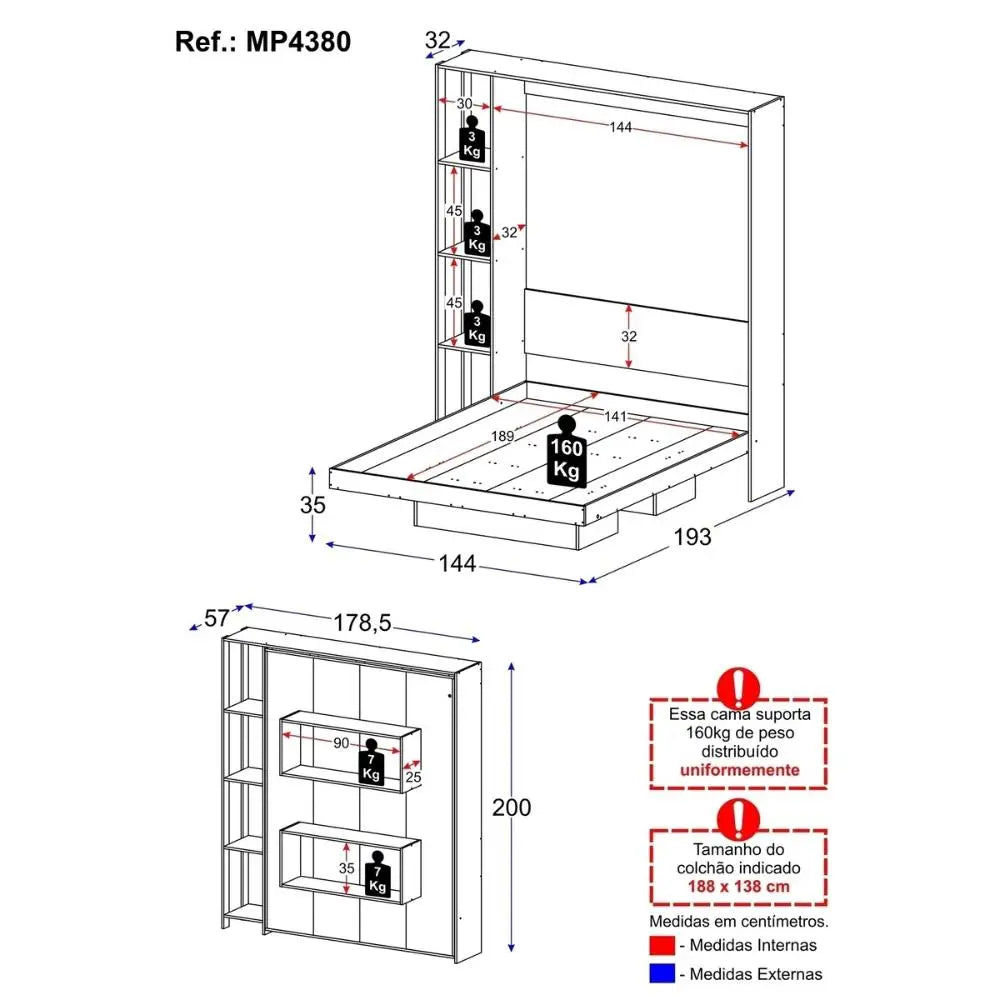 Colchão Compatível: 138 x 188 cm (não incluso).