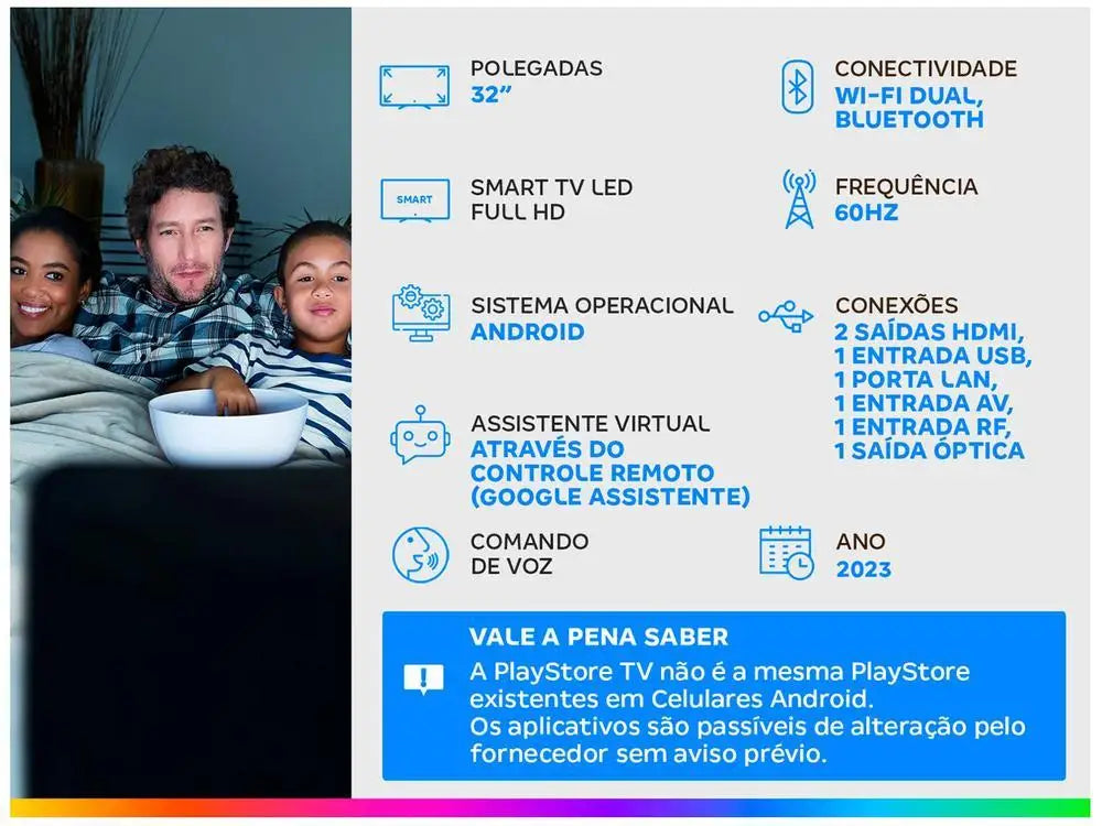 Conteúdo da Embalagem: 1 Smart TV e 1 Controle remoto