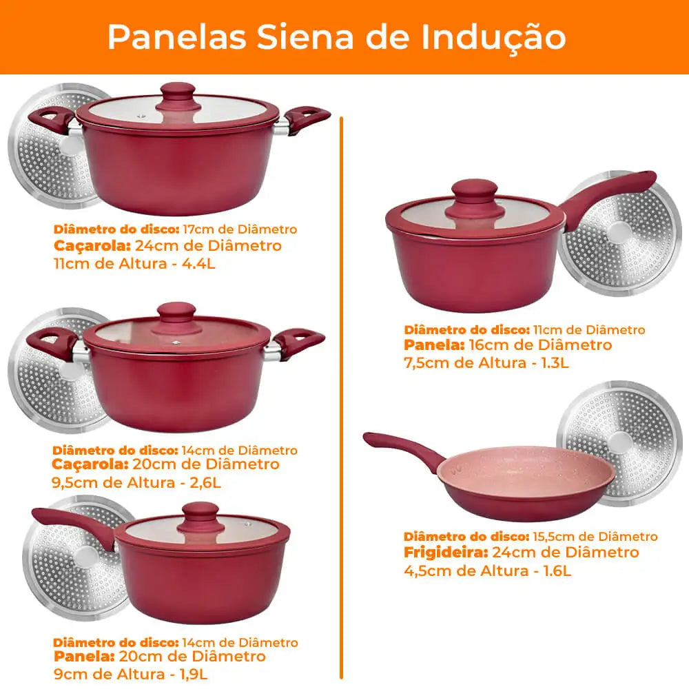 Conjunto de Panelas Cerâmicas Siena Wine Antiaderente para Indução 5 Peças – Home View